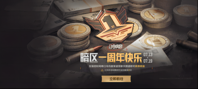 活动期间在世界聊天频道输入并发送指定口令内容暗区一周年快乐,为暗区周年庆发出庆祝,即可获得口令红包!