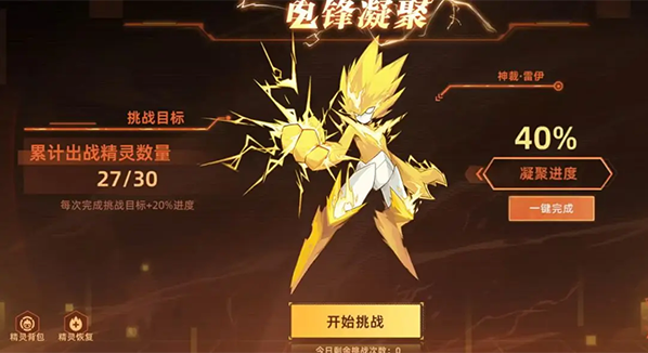 过关条件:累计出战30只精灵,打法1和打法2需要2次挑战次数(每次挑战累计15只),打法3也需要2次挑战次数(每次挑战累计16只)