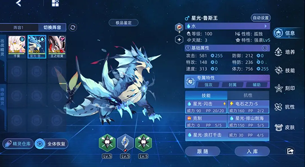 所需精灵:5只野怪,星光.鲁斯王(刻印,性格,学习力,套装都不要加防御,不点抗性)