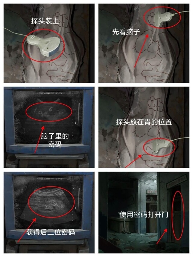 1、获取凭条:在初始场景中,查看右边椅子上的凭条,并将其放在旁边的病例检查机上,获取数字密码58339。