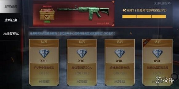 4、在掌上穿越火线活动中,每周可在活动界面领取10钻石。
