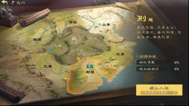 荆楚:丘陵起伏、河谷交错,复杂的地形造就了独特的地图,州府提供的部队负载+3%加成,提升了采集效率,使玩家在资源掠夺与野怪清剿中占据上风,与此同时,枪兵防御力+3%的强化,让前线作战单元的生存能力得到提升,这种加成机制,完美契合了发育为主、伺机而动的保守派玩法,选择荆楚的玩家往往采取低姿态,专注于内部建设和资源囤积,待时机成熟后再根据周边局势灵活调整策略。