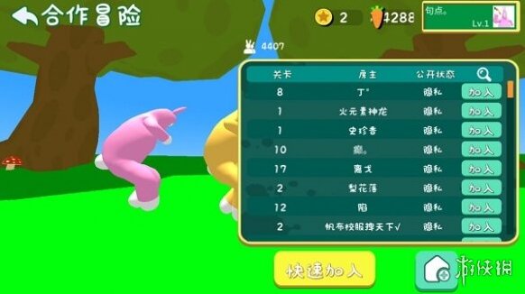 5、可以选择加入那些状态为公开的房间,或者点击快速加入按钮来迅速开始游戏。