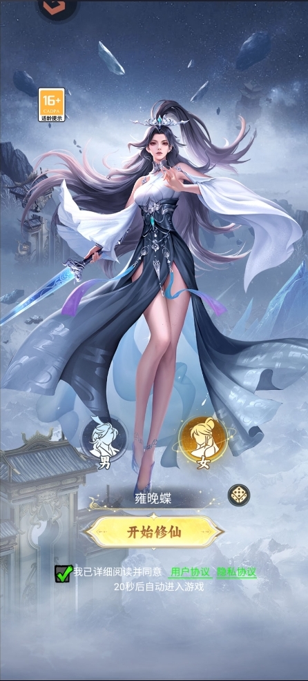 2、创建角色身份,再为自己取一个ID之后点击开始修仙。