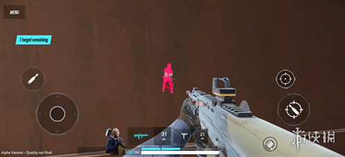 4、遵循主流FPS操作模式,屏幕滑动可调整瞄准镜朝向,长按射击键发动攻击。