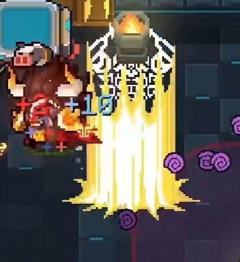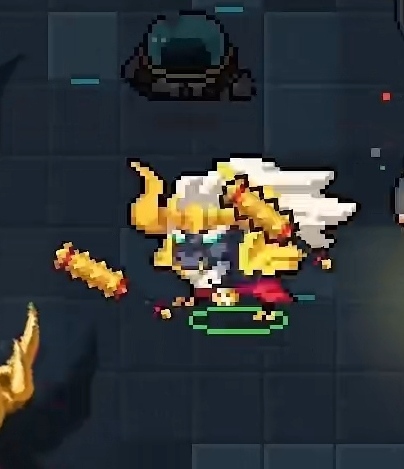 这款皮肤把初始武器改成了三叉戟,而这款皮肤的眼睛再加上这个不开心的嘴型,看起来还有点滑稽,就好像是被迫拉到地牢打怪的。虽然这款皮肤外形不讨喜,不过它的特效绝对是杠杠的!