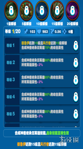 神兽合成:当两个组合的英雄在对局外升级到指定等级,并且在对局内两个英雄均达到4阶时,就可以进行神兽合成。