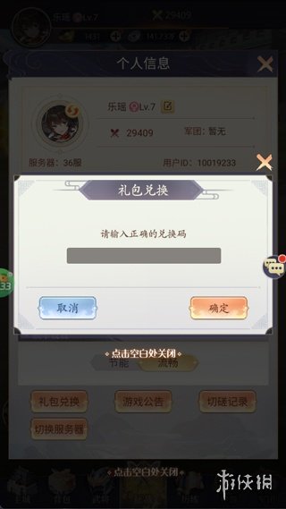 2、随后点击礼包兑换,在弹出的兑换框中输入兑换码,即可完成领取。